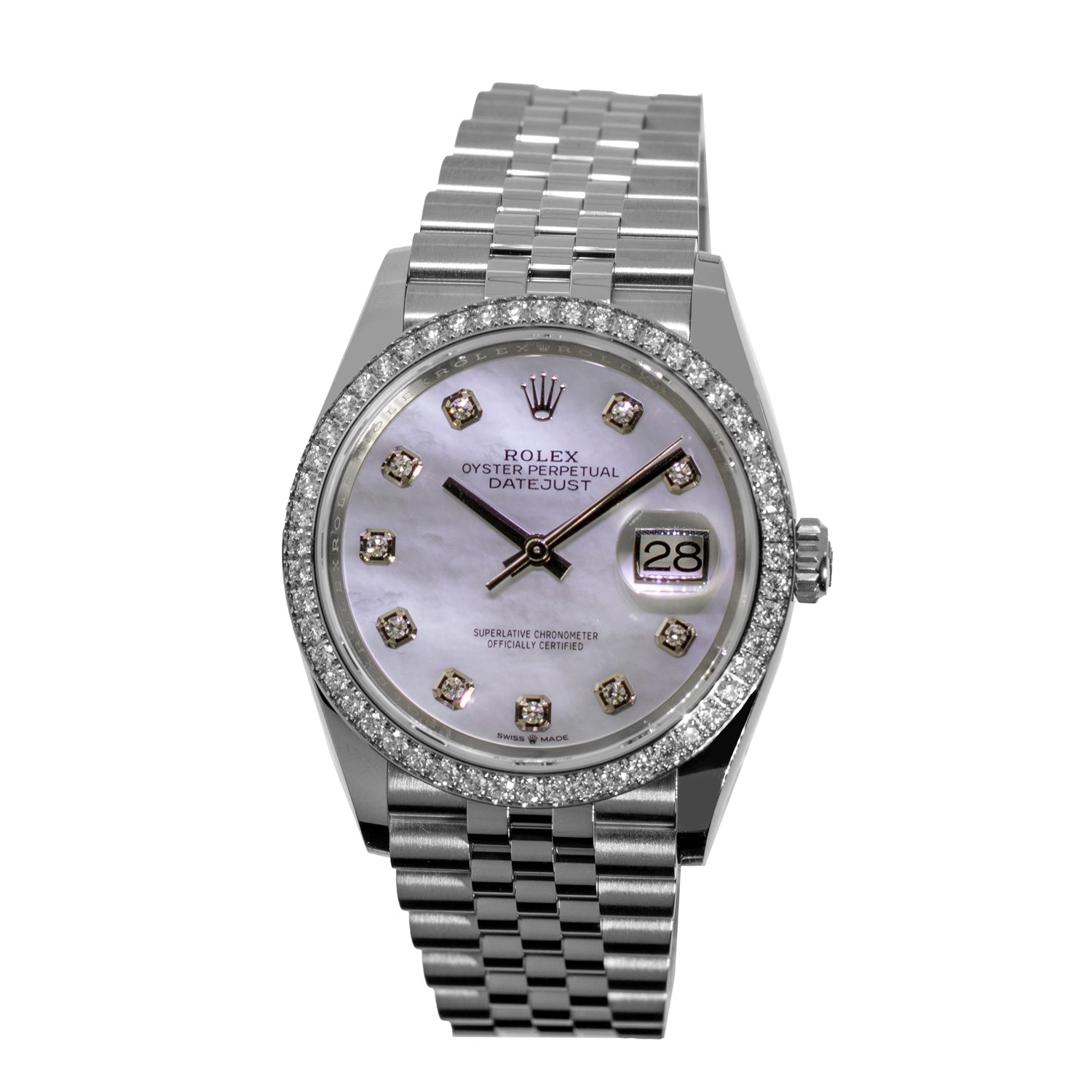 Rolex Datejust 36mm White Gold & Steel Mother of Pearl Diamond Dial Diamond Bezel 126284