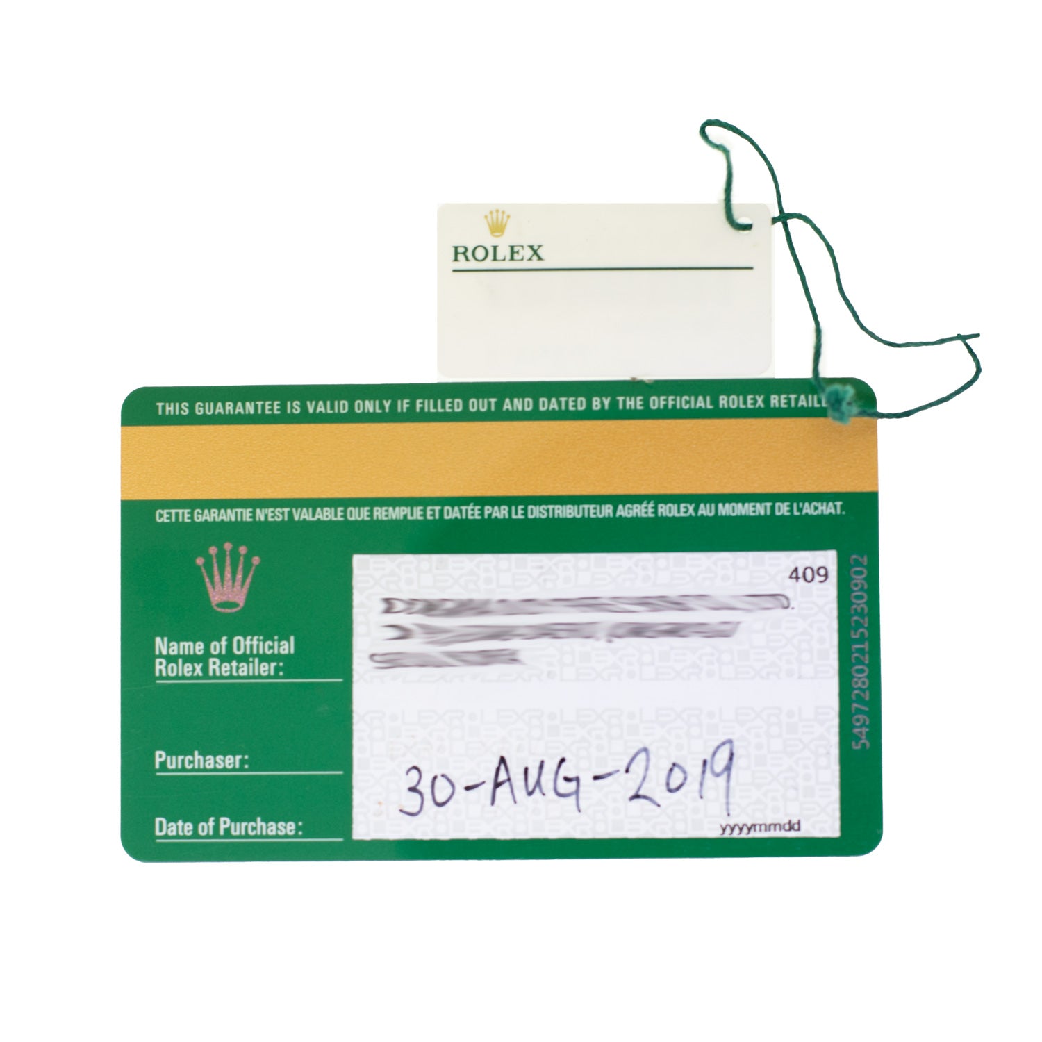 Guaranteed Authentic Men's Rolex GMT-Master II with a 40mm stainless steel case and a bidirectional rotatable Cerachrom bezel insert with 24-hour engraved markings. This fine timepiece features a green 24-hour second-time zone hand, independent 12-hour hand, black dial, and stainless steel Oyster bracelet. This watch is brand new, old stock (NOS) 2019 production with all factory stickers, Bar Code. Discontinued Model. It comes with a One Year Warranty from Da Vinci Fine Jewelry, Inc., a Rolex box and Rolex Papers (2019), White Hang Tag certified retail appraisal from Da Vinci Fine Jewelry, Inc.