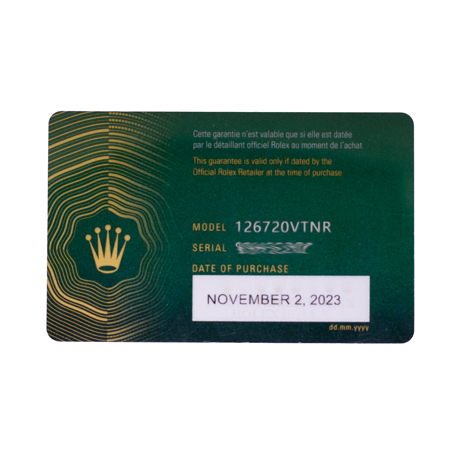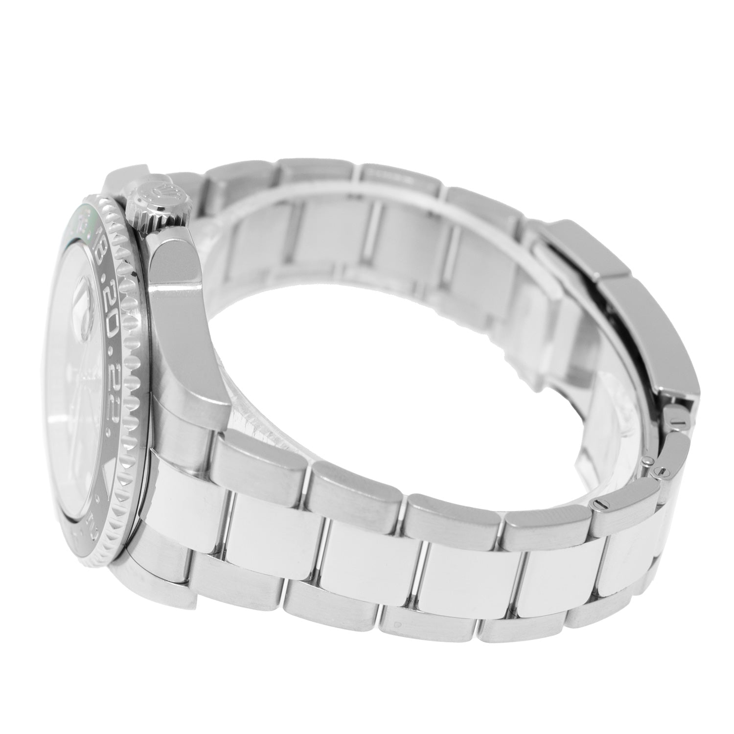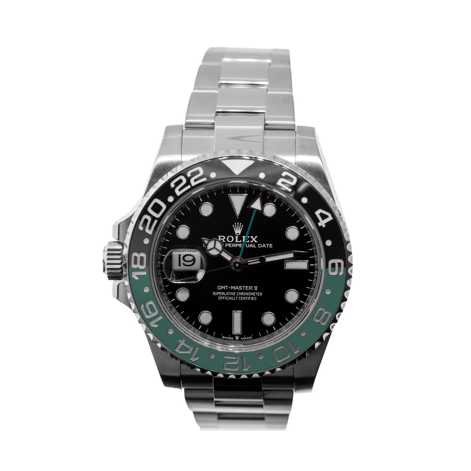 Guaranteed Authentic Men's Rolex GMT-Master II with a 40mm stainless steel case and the unique black and green "Sprite" 24-hour ceramic bezel insert. This fine timepiece features a black dial and a stainless steel Oyster bracelet. This watch is in excellent condition, 2023 production with Rolex Warranty Card: 2023. It comes with a One Year Warranty from Da Vinci Fine Jewelry, Inc., a Rolex box and Rolex Warranty Card (2023) - Rolex factory Warranty until Nov. 2028, certified retail appraisal from Da Vinci Fine Jewelry, Inc.