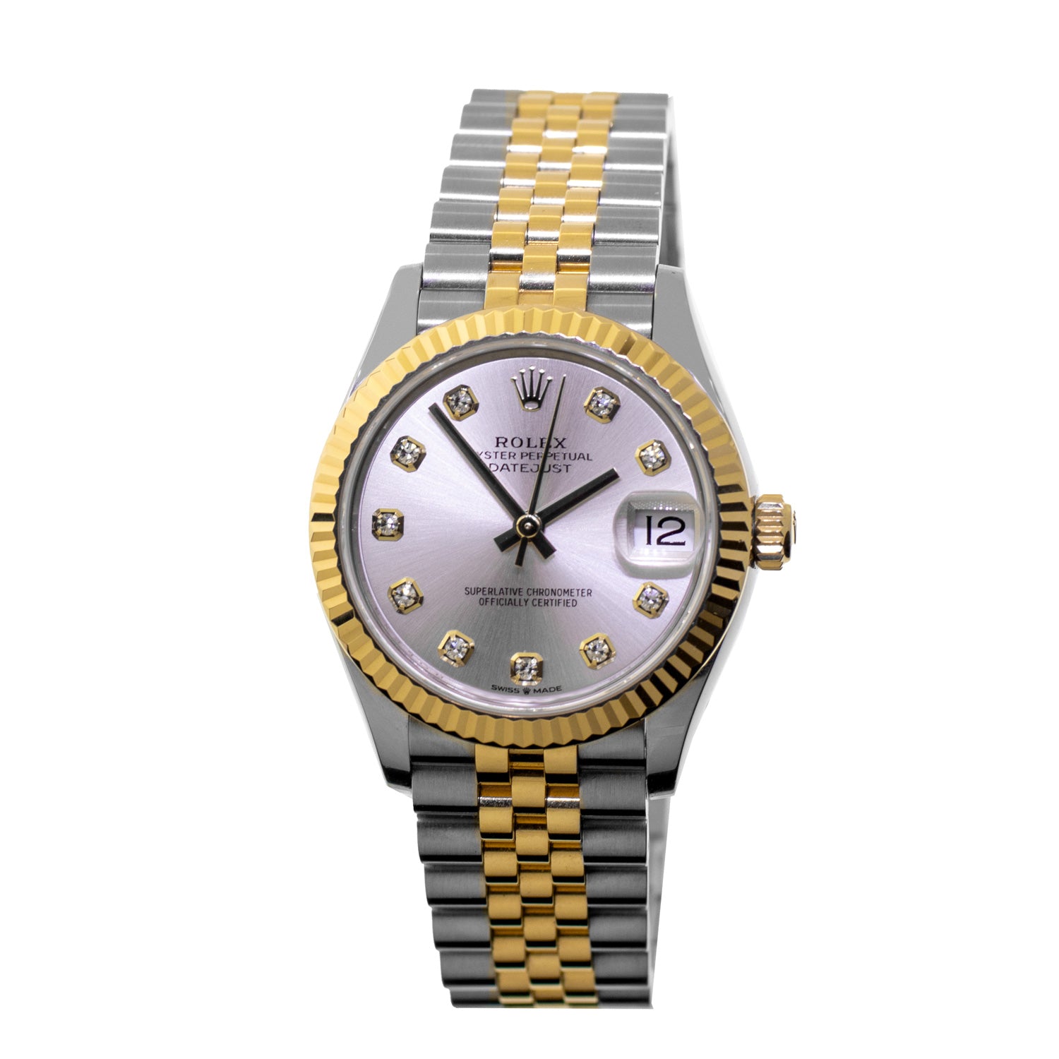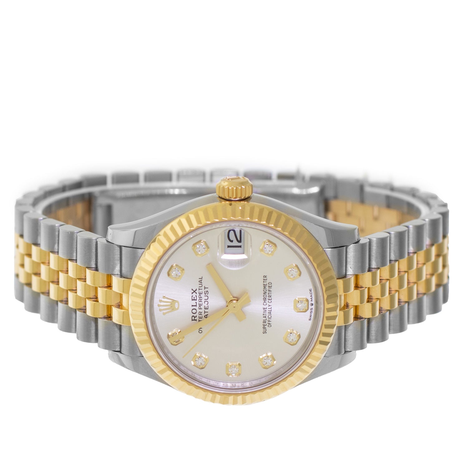 Guaranteed Authentic Rolex Lady-Datejust with a 31mm 18k yellow gold and stainless steel case and a Oyster Diamond dial. This fine timepiece features a date indicator, a classic 18K yellow gold and stainless steel Jubilee bracelet and an 18K yellow gold fluted bezel. This watch is in MINT condition with Rolex Card: 2025, all factory. It comes with a Rolex factory Warranty until April 2030, a gift box, Rolex papers, and certified retail appraisal from Da Vinci Fine Jewelry.