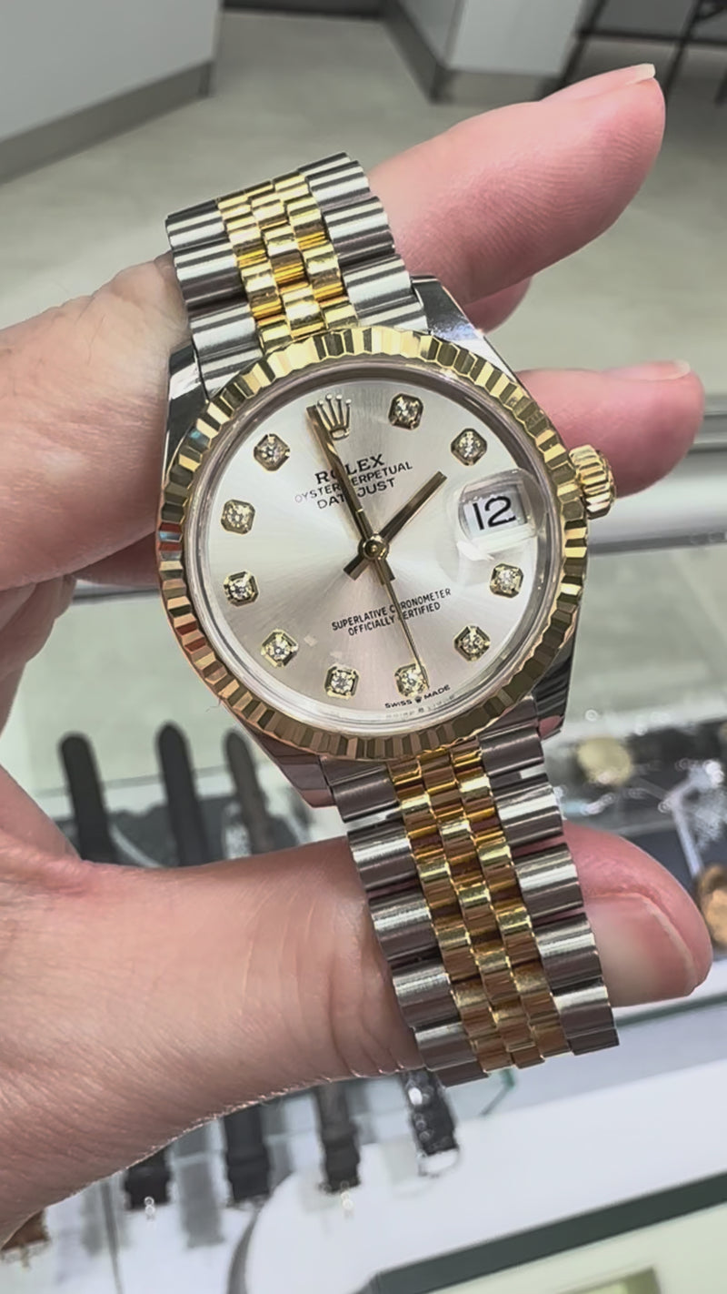 Rolex Datejust 31mm Yellow Gold & Steel Oyster Diamond Dial and Fluted Bezel 278273